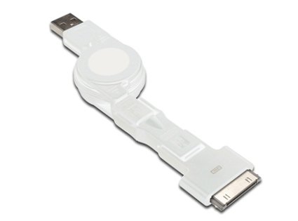 3 in 1 Makaralı Kablo, Apple 30 pin erkek + micro USB B erkek + mini USB B erkek USB A erkek, 0.75 metre, AWG 30, USB 2.0, UL, beyaz renk